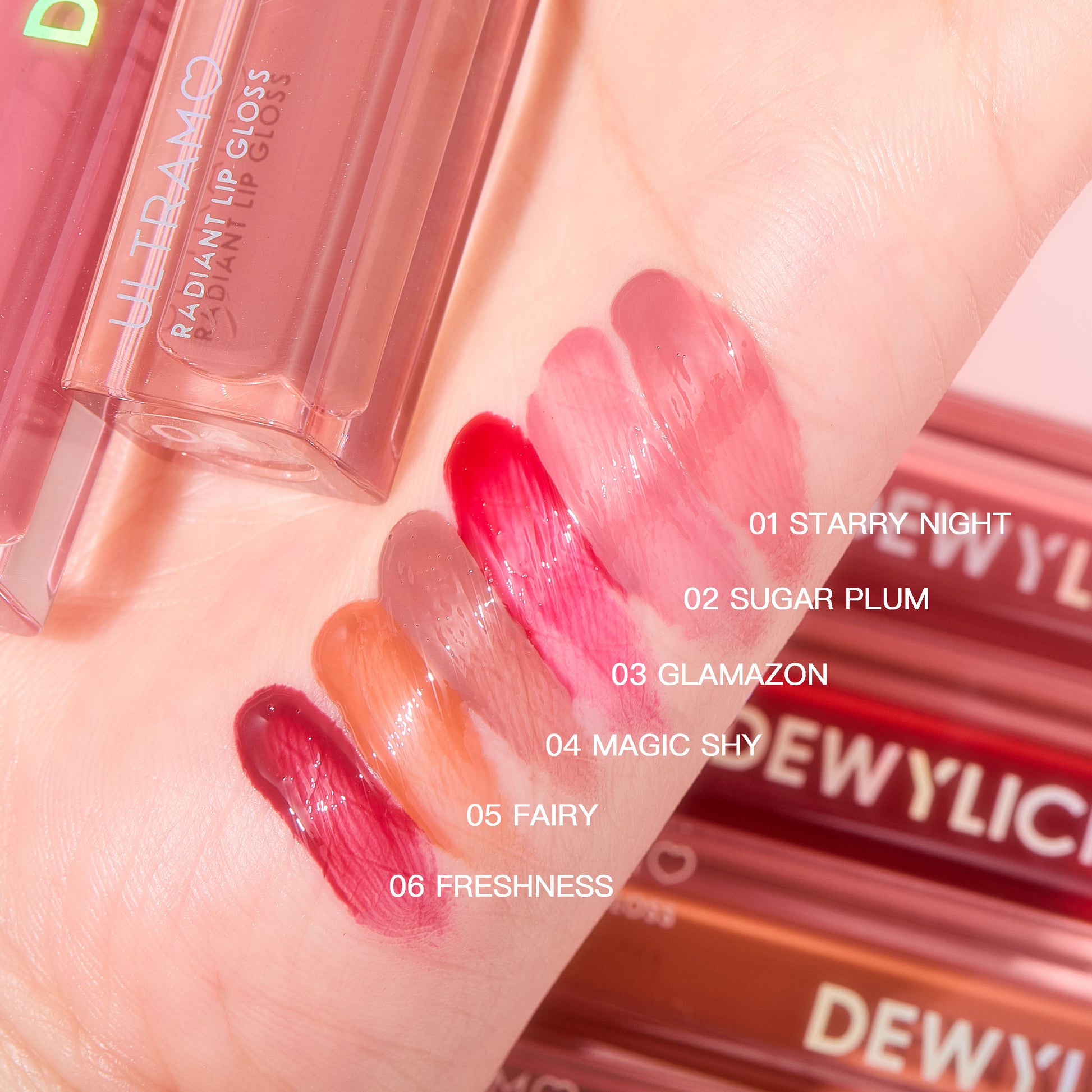 ULTRAMO【Box】12Pcs 6 Colors Radiant Lip Gloss